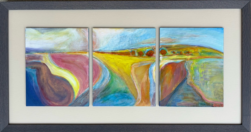 Countryside. 8”x10” acrylic canvas panels. 30”x20” framed.