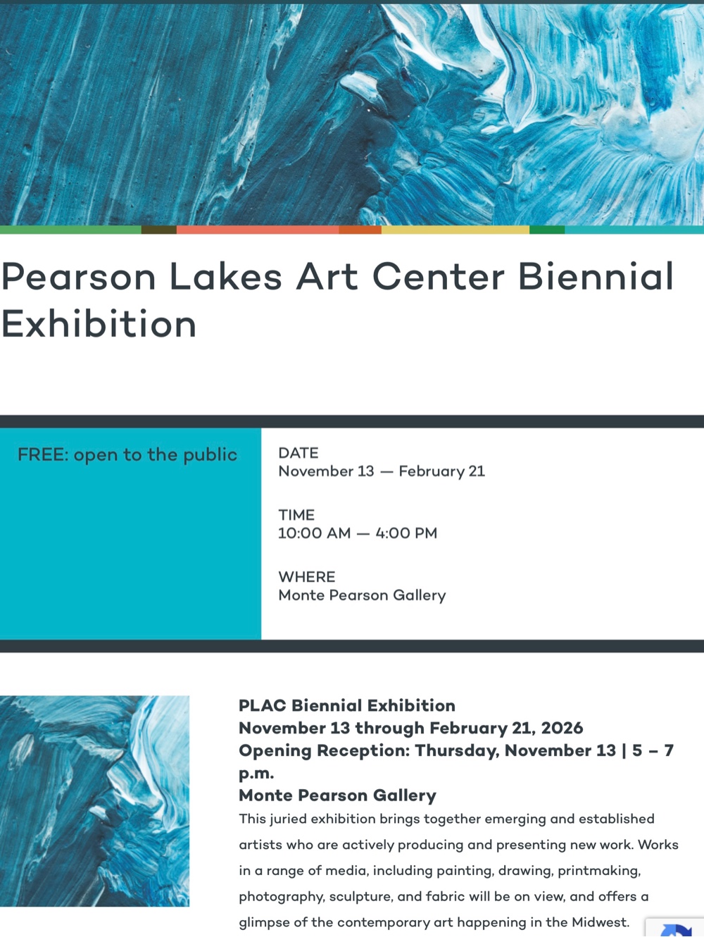 So humbled my oil painting was accepted to the Pearson Lakes Art Center Biennial Exhibition November 13-February 21, 2026. Opening reception November 13, 5:00-7:00 p.m. Hwy. 71 N. Okoboji, Iowa